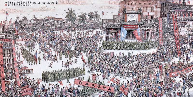 画家袁鹏飞作品《台湾光复庆典》。主办方供图